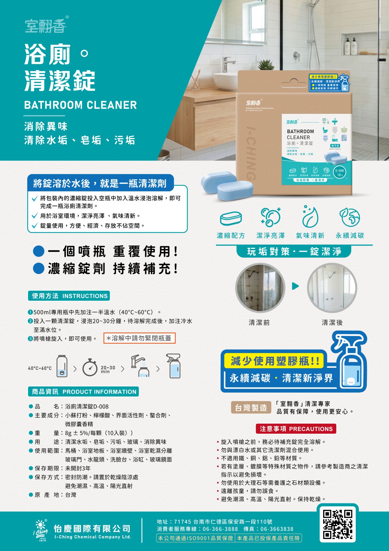 清潔新境界: 一個噴瓶, 重覆使用。濃縮錠劑, 持續補充。減少使用一次性的塑膠瓶。清潔方式的革新, 擁有更潔浄的家, 更乾淨的地球。